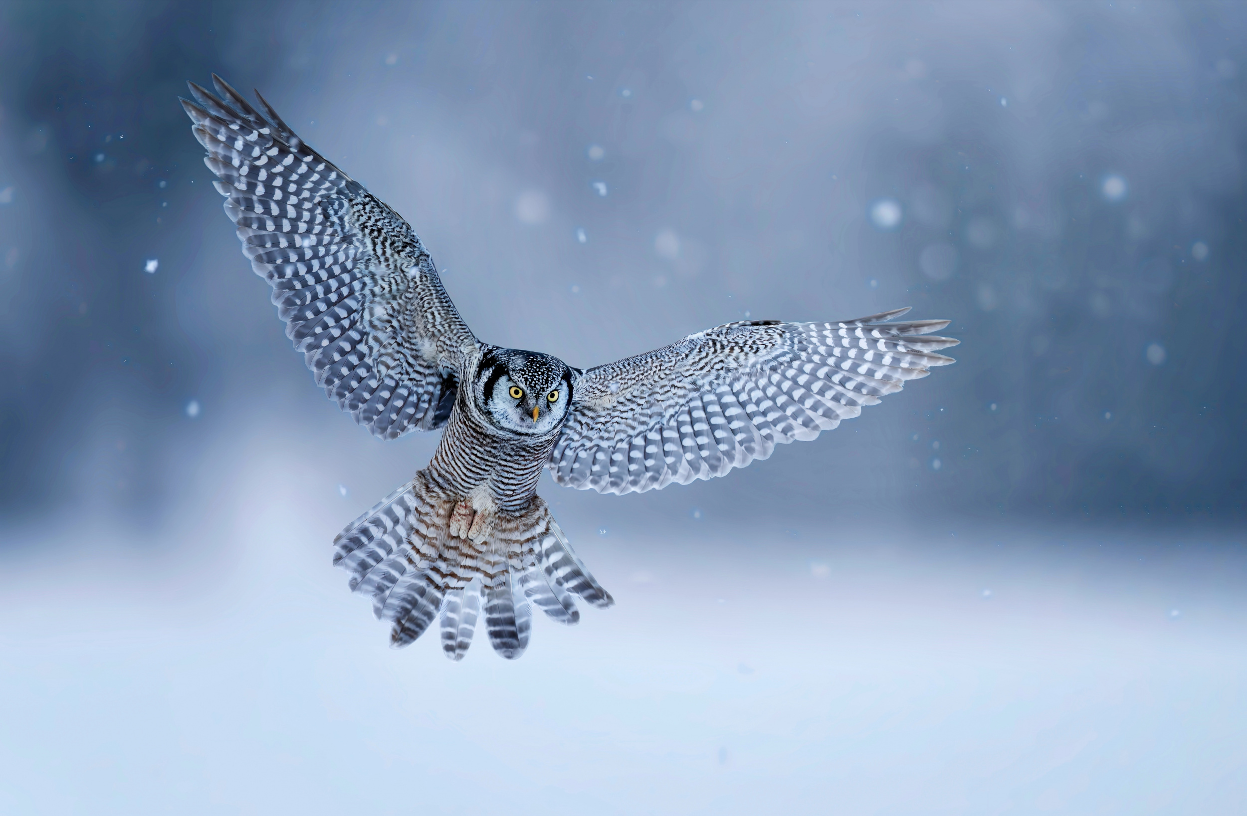 The muted palette of winter — whites, blues, and greys — creates a calm canvas that draws attention to the bird’s form and gestures. Snow, mist or sleet can add movement and atmosphere, transforming a simple portrait into a charged scene. The season's stark beauty encapsulates the essence of owl photography: strength balanced by serenity and endurance framed in elegance.