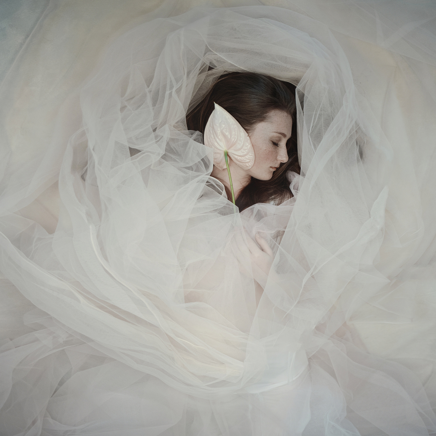 Her aesthetic roots go back to her childhood. The Renaissance masters and Baroque art shaped her fundamental understanding of light, specifically the dramatic interplay of chiaroscuro and the strength of classical compositions. As her career progressed, her academic pursuits further refined her vision; her Master’s degree thesis focused on the humanist photography of Robert Doisneau, specifically the delicate, often blurred boundary between the candid "found" moment and the elaborate narrative of a staged scene. Her visual palette was later expanded by the decadence of Jan Saudek, the provocative nature of Helmut Newton, and the "amazingly weird imaginarium" of Brooke Shaden.